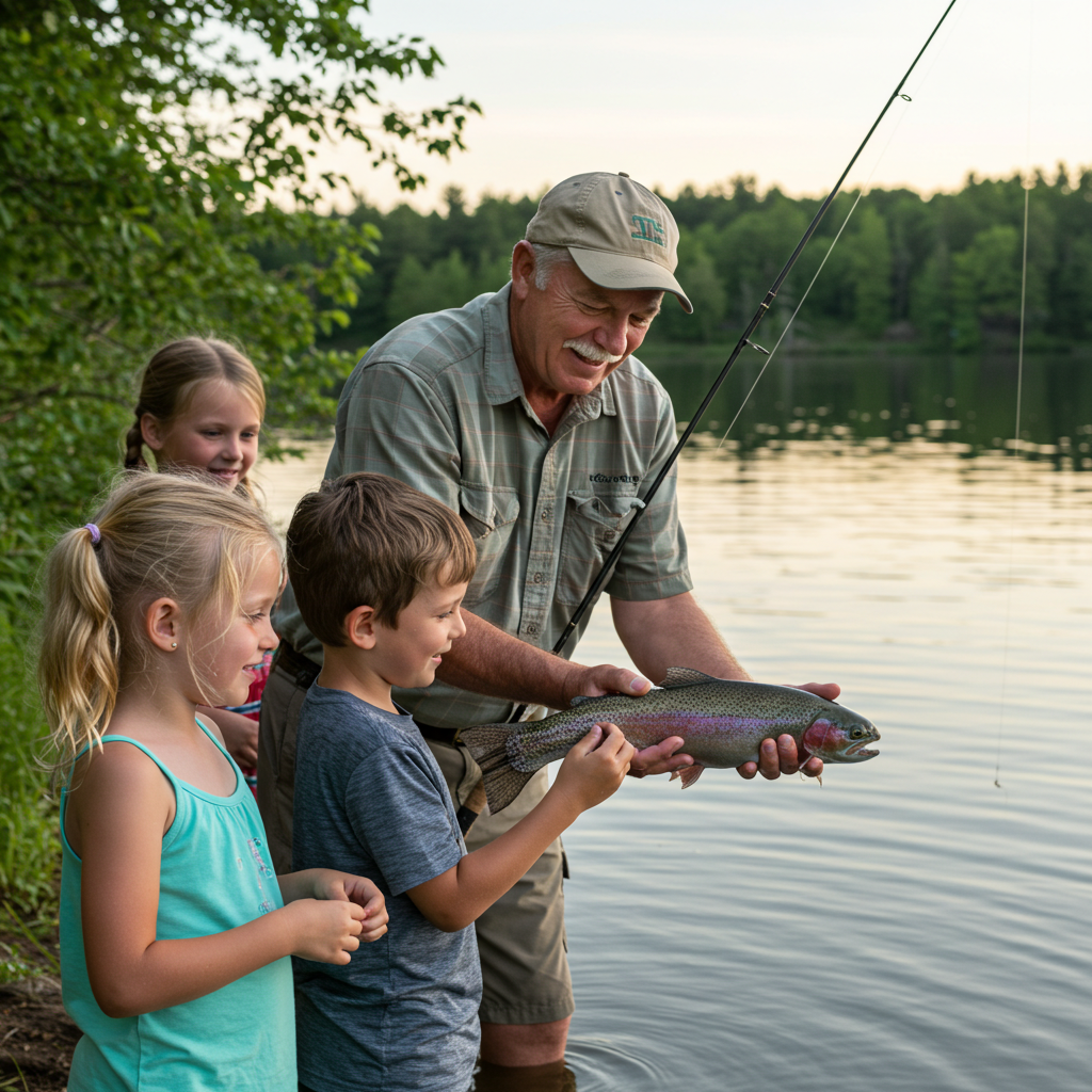 My grandparents, their three children and nine grand kids (I’m #7) would spend too few days fishing and playing at this private sportsman’s club. It’s a brick former schoolhouse in a right sized field where a dam creates a lake stocked with trout. It’s still there!