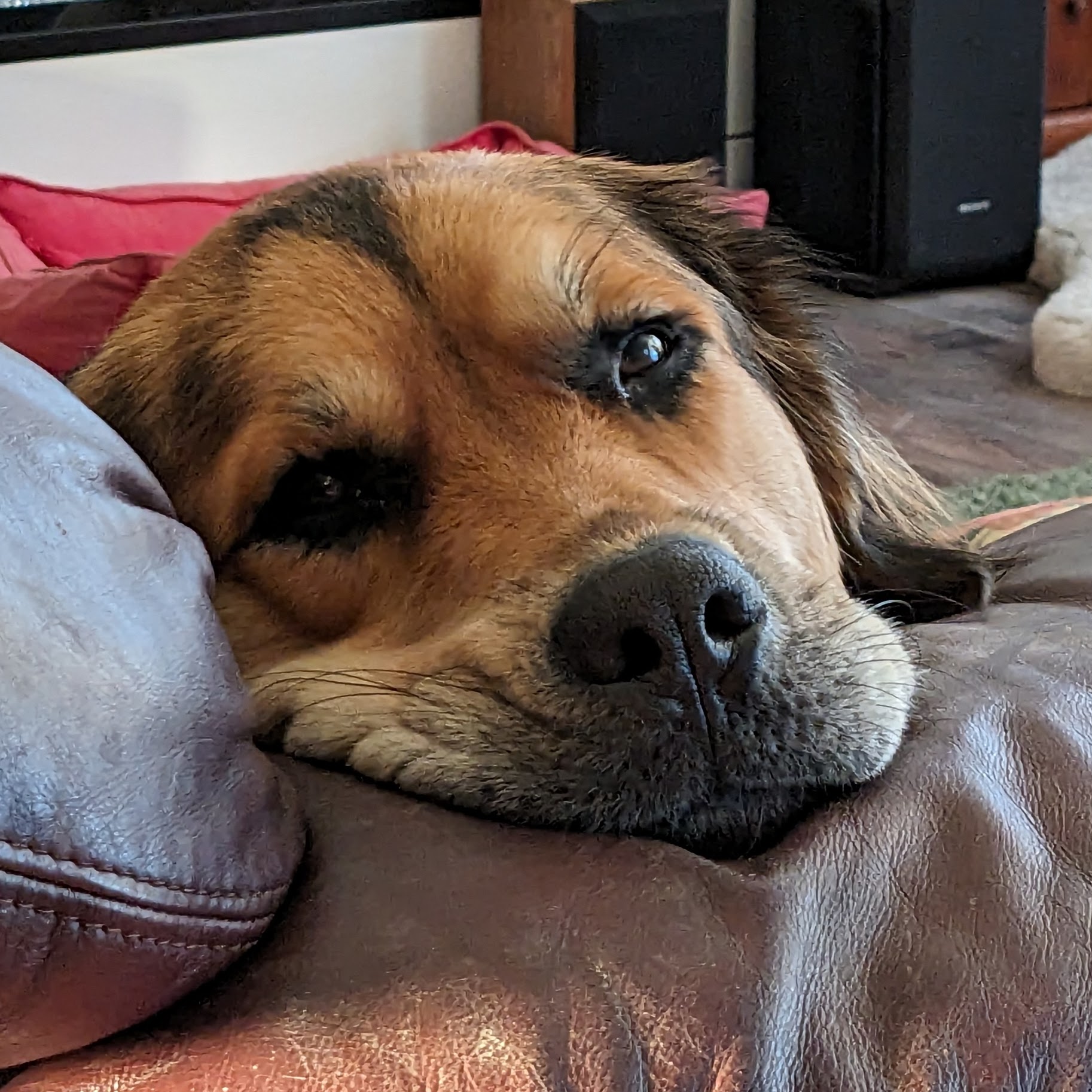 My dog Mildred Amelia Milicent May. She stares at me from the couch while I play in my open-space house. The acoustics are perfect for recording where the adjoining office is treated with sound panels for mixing and sweetening. I was slowly going between two open guitar chords and harmonizing with the harmonica, as one does. During this trance I looked up and caught Milly May’s stare. This flooded me with love hormones. She kept staring, which meant it was time for a snack and a walk. We did both, then wrote the lyrics.